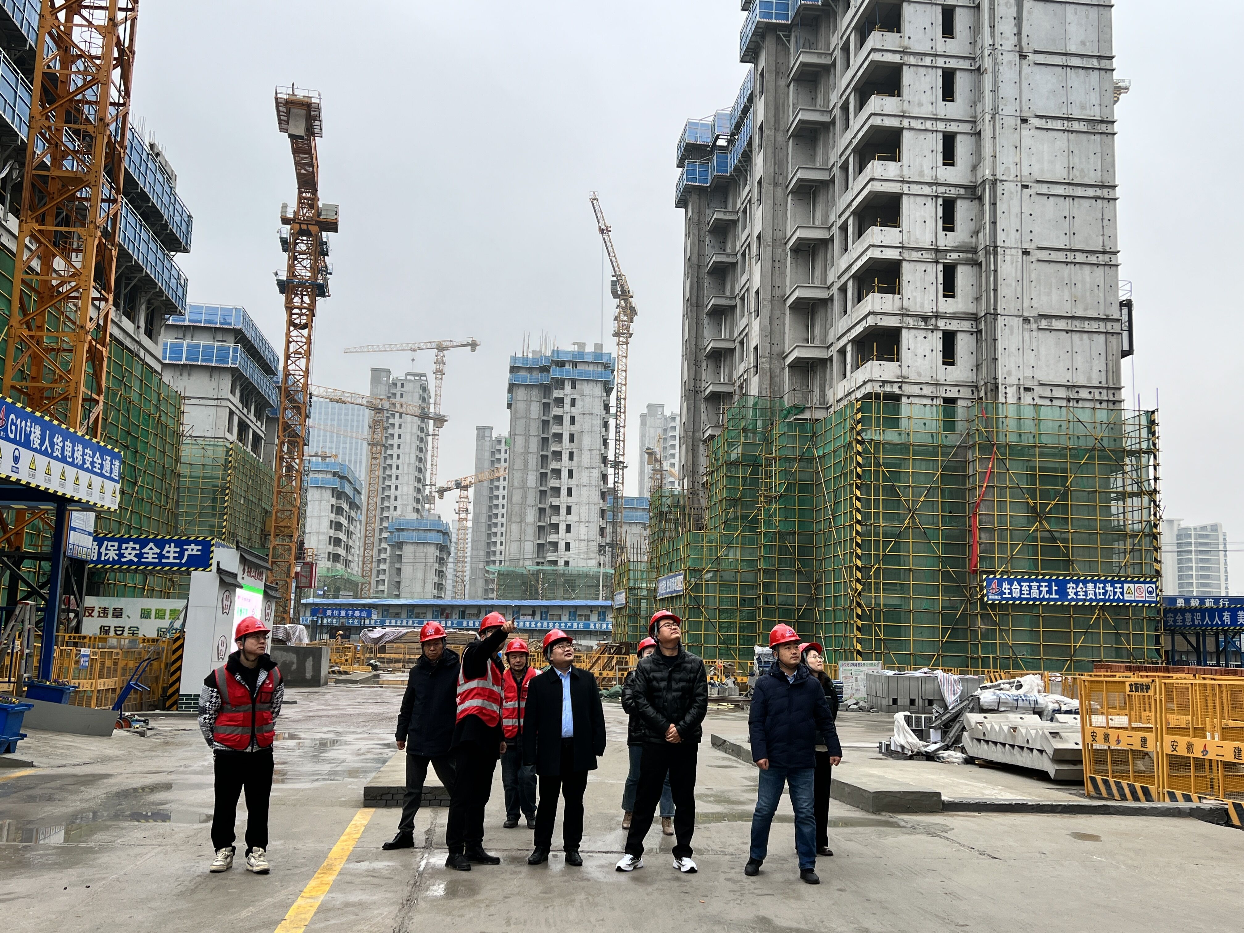 12月13日上午,安徽建工集團團委委員、安徽路橋團委書記、黨委工作部副主任王東一行赴建工二建肥西FX202234號地塊項目開展集團“青年文明號”工程創建現場驗收。