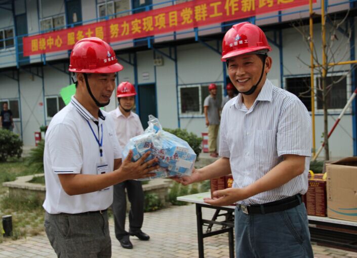 牛曙東副書記一行還為奮戰在建科院項目的一線職工送上了毛巾、綠豆、白糖、涼茶、風油精、十滴水等防暑降溫用品和藥品,并叮囑高溫季節要合理安排作息時間,確保施工現場作業安全,防止出現高溫中暑情況,要站在安全發展的高度,切實將防暑降溫工作安排好、落實好,保障職工安全度夏。