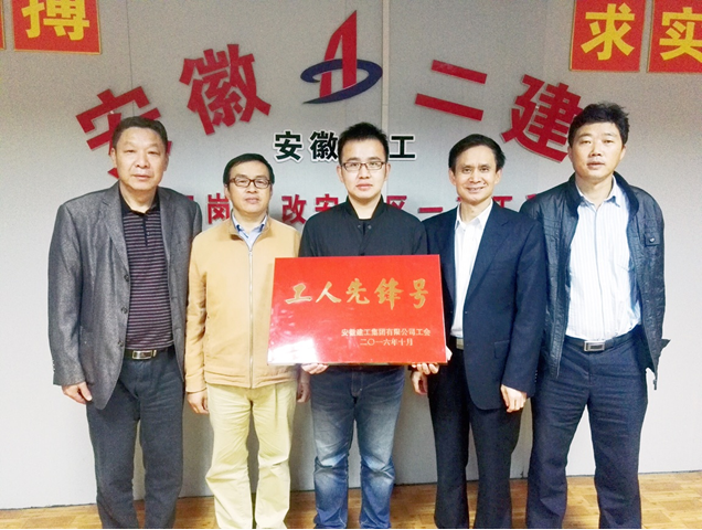 2016年10月24,集團公司工會副主席吳曉伍在安徽三建、路橋公司相關人員和二建公司工會主席李林的陪同下,對淮南砂里崗棚改安置房項目工作進行檢查指導,并給該項目部 “工人先鋒號”授牌。