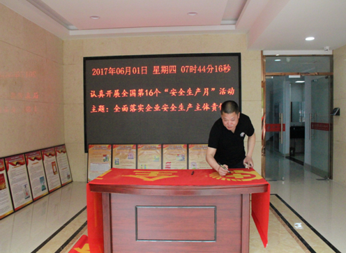 6月1日上午,安全管理部精心準備,利用安全宣傳展板,懸掛橫幅、電子屏幕播放“安全生產月”主題活動等形式進行宣傳,并與工會共同開展“安全生產月”宣誓簽名活動。公司領導班子成員及各部門職工100余人參加宣誓并鄭重簽名。