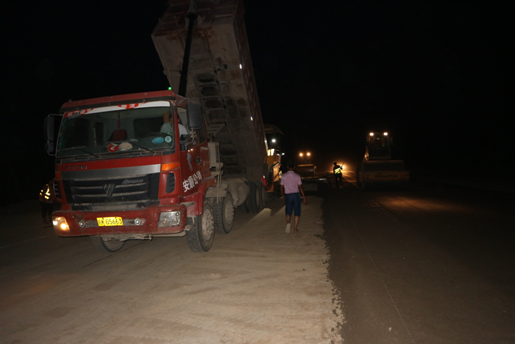 白天,烈日炎炎,驕陽似火,當大多數人對室外的高溫望而卻步,躲在空調房內納涼避暑之時,卻有這樣一群可敬的人頂著烈日、冒著酷暑,揮汗如雨,在高溫的“烤”驗下仍堅守崗位。他們平凡無奇,對高溫也并非有特別的忍耐力,只因身上肩負著“一流建工夢”的擔子,讓他們堅持著。夜晚,為了推進太和ppp項目建設工期進度,照樣加班加點的干。夜晚九點多的施工現場,自卸車川流不息,穿著橘黃色馬甲的施工人員,揮舞著導流棒對來往車輛進行分流,工人正在鋪裝瀝青,壓路機來回壓實,熱火朝天。