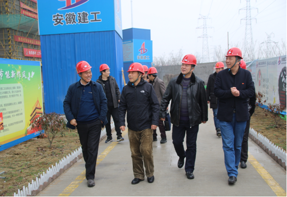 在項目施工現(xiàn)場,徐文聯(lián)主任一行首先檢查了肥西華商廣場項目現(xiàn)場建設(shè)情況,聽取了項目經(jīng)理李圣逵對關(guān)于項目黨建組織工作和施工生產(chǎn)工作的情況簡要匯報。