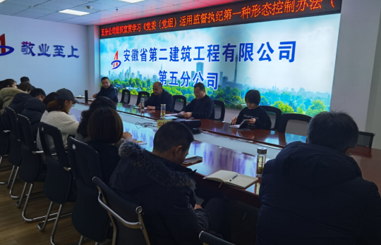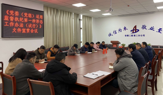 近期,為認真落實全面從嚴治黨主體責任和監督責任,踐行“四種形態”,強化“第一種形態”運用。安徽二建公司所屬各單位組織學習了《黨委(黨組)運用監督執紀第一種形態工作辦法(試行)》。