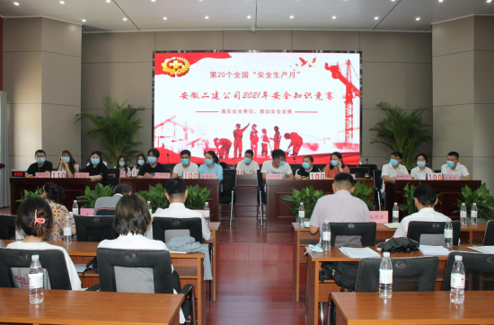 在全國第20個“安全生產月”到來之際。為了營造濃厚的安全生產氛圍,人人講安全、人人重視安全。6月7日下午,在安徽二建公司新會議室舉行以“落實安全責任,推動安全發(fā)展”為主題的安全知識競賽。公司黨委副書記、紀委書記仇多維,副總經理葉和永,安全總監(jiān)、安全管理部主任曹建,黨委工作部主任施用宏,工會副主席、女工主任王俊出席活動并擔任評委。14支代表隊及領隊共120多人參加。