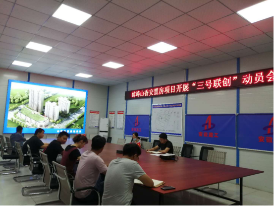6月24日,一分公司黨支部書記倪海霞帶領(lǐng)機(jī)關(guān)人員赴蚌埠山香安置房項(xiàng)目,召開“三號(hào)聯(lián)創(chuàng)”動(dòng)員會(huì)。