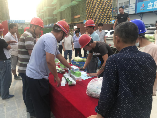 為貫徹落實好公司2019年夏日“送清涼”活動,傳遞公司及項目部對一線工人的關愛,7月15日下午,臨泉匯鑫·悅瀾灣一期B標段項目部開展“送清涼”活動,在項目管理人員的組織下,將購置的西瓜、綠豆、藿香正氣液、仁丹等防暑用品全部發放到現場一線工人的手中,表達了公司和項目部關心、體恤一線工人的濃濃情意,也給炎炎夏日帶來一絲愜意、一縷清涼!