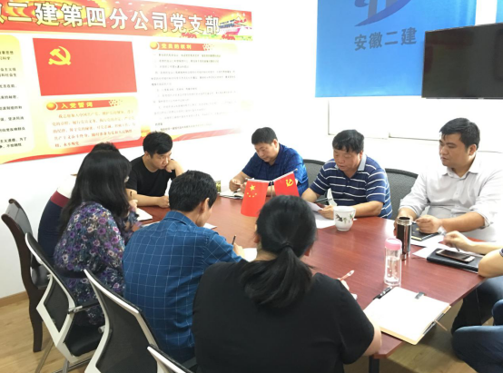 2019年5月27日上午,四分公司黨支部開展了“黨員活動日”活動,集中學習了建工控股黨委關于持續深入扎實學好用好黨章的文件,并組織黨員對照黨章查擺問題,機關和合肥項目部黨員參加學習,黨支部書記董建民主持活動。