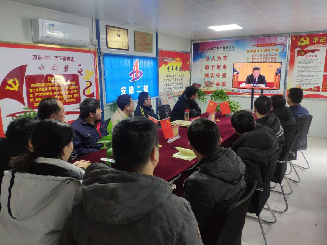 2018年12月18日,慶祝改革開放四十周年大會在北京召開。一分公司舒城遠大中央公園一期B標段項目黨支部組織黨員及青年團員集中收看大會的實況直播。
