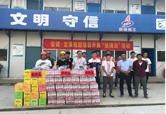 炎炎夏日高溫無情,絲絲涼意公司有愛。自7月以來,氣溫持續升高,為應對高溫酷暑天氣龍溪觀邸項目部積極采取有效措施,及時開展夏季“送清涼”慰問活動,充分體現了項目部對廣大參建員工和農民工的關愛。