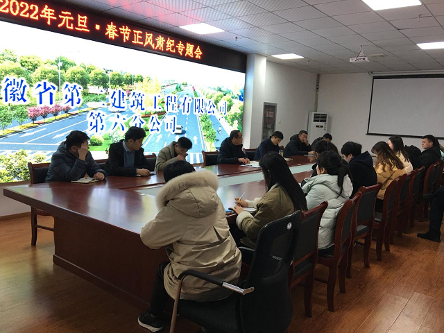 2022年元旦、春節(jié)將至,為進(jìn)一步強(qiáng)化正風(fēng)肅紀(jì),確保 “兩節(jié)”期間風(fēng)清氣正,12月31日下午,第六分公司黨支部召開正風(fēng)肅紀(jì)專題會(huì)議,認(rèn)真學(xué)習(xí)貫徹中共中央辦公廳、國(guó)務(wù)院辦公廳和中央紀(jì)委印發(fā)《關(guān)于做好2022年元旦春節(jié)期間正風(fēng)肅紀(jì)工作的通知》,對(duì)做好元旦春節(jié)期間有關(guān)工作提出明確要求,馳而不息糾“四風(fēng)”、樹新風(fēng),積極營(yíng)造歡樂祥和、文明節(jié)儉、風(fēng)清氣正的節(jié)日氛圍。