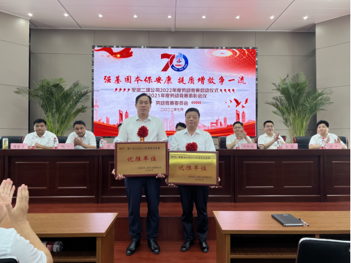 7月7日上午,安徽二建公司舉行了“強(qiáng)基固本保安康 提質(zhì)增效爭一流”2022年勞動(dòng)競賽啟動(dòng)儀式暨2021年度勞動(dòng)競賽表彰會(huì)議。公司領(lǐng)導(dǎo)出席會(huì)議,勞動(dòng)競賽委員會(huì)成員、所屬各單位主要領(lǐng)導(dǎo)、分管生產(chǎn)及質(zhì)量副經(jīng)理、工會(huì)主席、工程管理科、安全科全體人員、參賽項(xiàng)目經(jīng)理代表等共80余人參會(huì)。會(huì)議由黨委副書記、工會(huì)主席王軍主持。